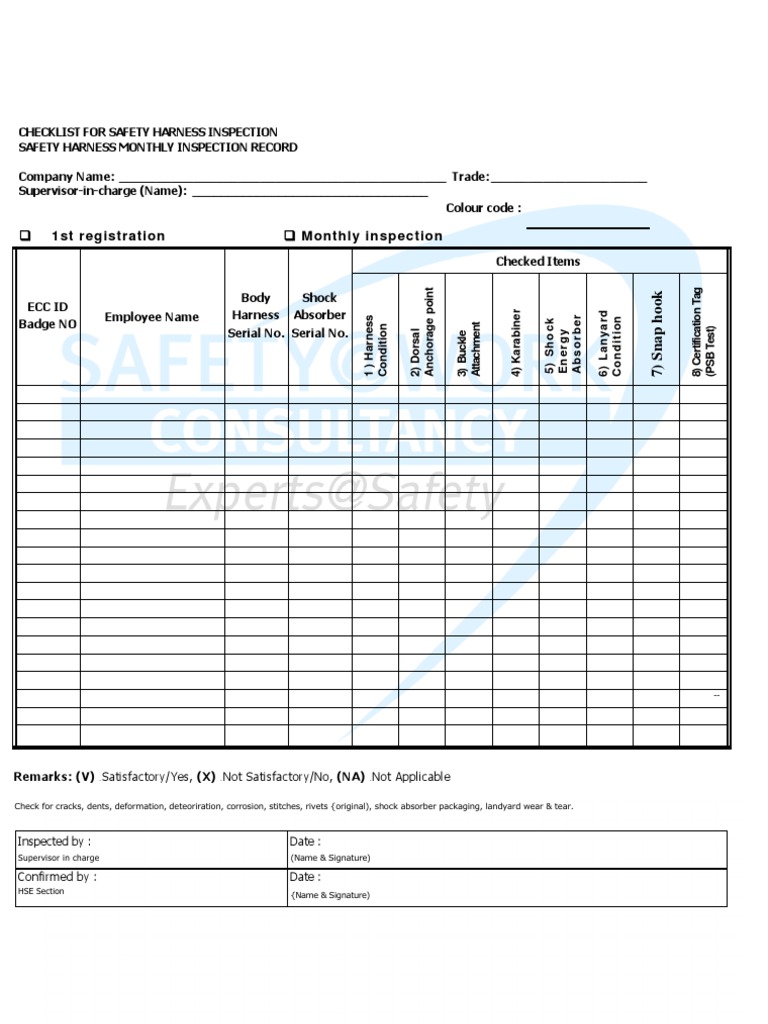 Harness Inspection Template : Full Body Harness Inspection Checklist Pdf Fill Out And Sign Printable Pdf Template Signnow : Some document may have the forms filled, you have to erase it manually.